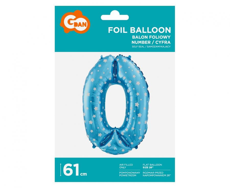 Kék Blue with Stars 0-ás szám fólia lufi 61 cm