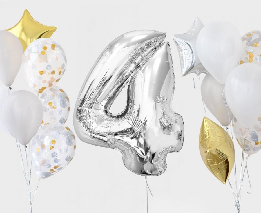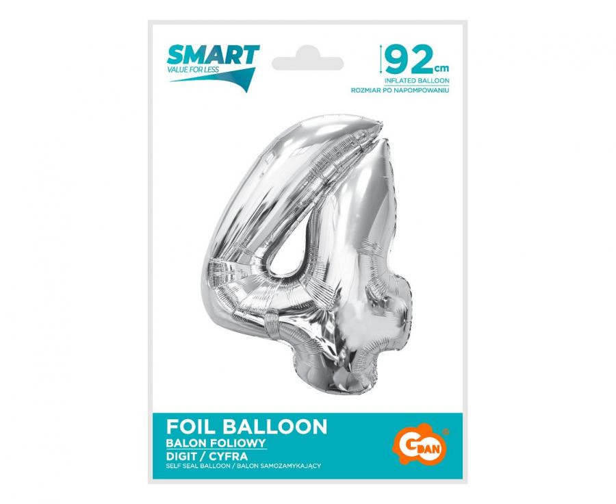 Ezüst 4-es Silver szám fólia lufi 92 cm