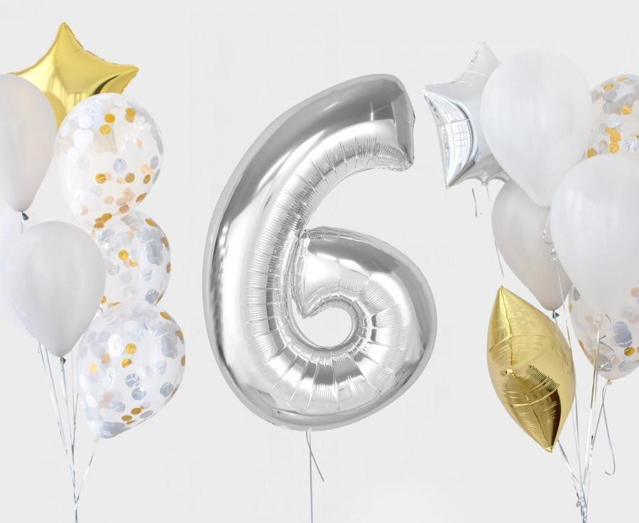Ezüst 6-os Silver szám fólia lufi 92 cm