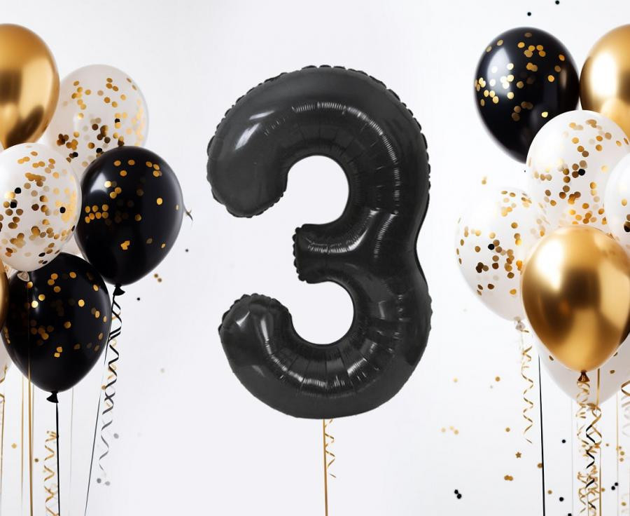 Fekete 3-as B&C Matt Black szám fólia lufi 85 cm