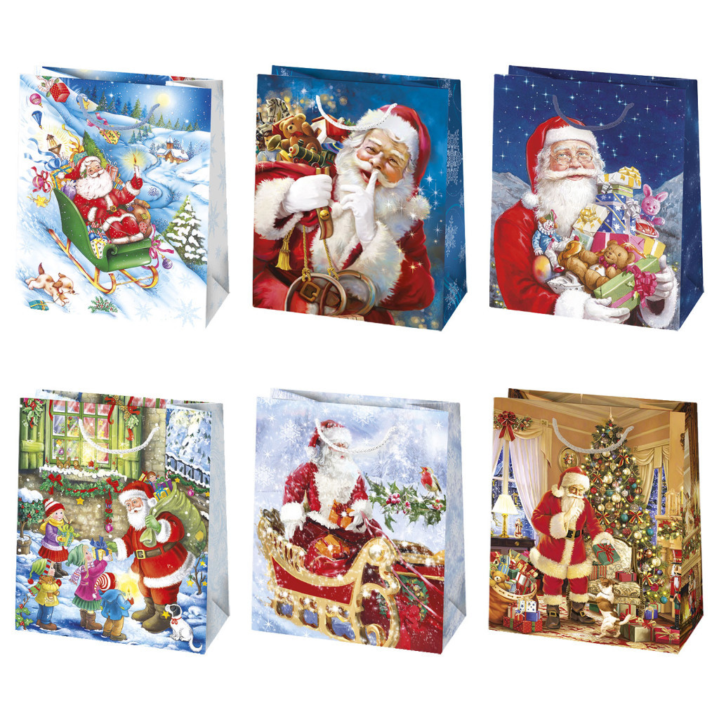 Karácsonyi Toyland papír ajándéktasak, ajándékzacskó 19x23x10,5 cm