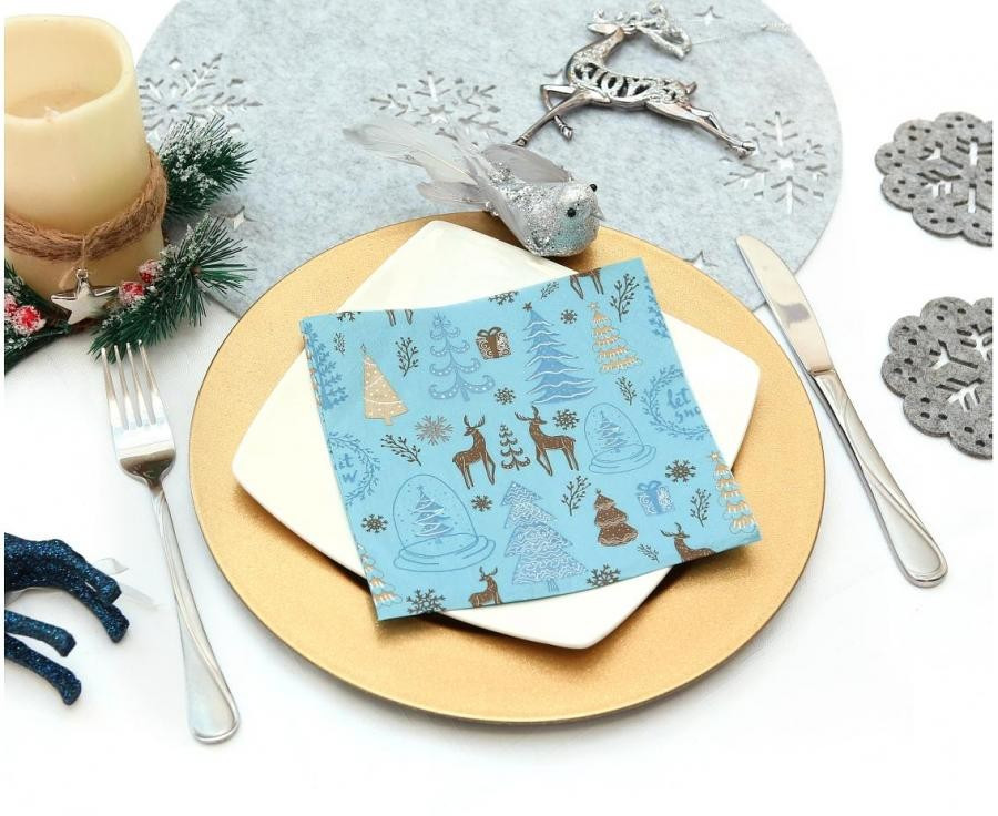 Karácsonyi Hello Winter Blue szalvéta 20 db-os 33x33 cm