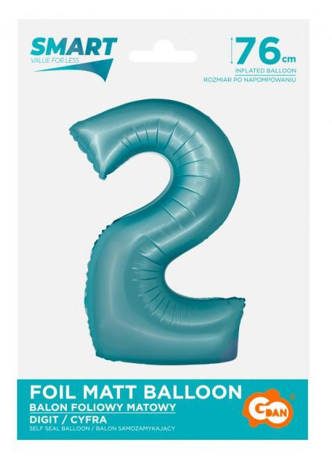 Kék 2-es Light Blue Mat szám fólia lufi 76 cm