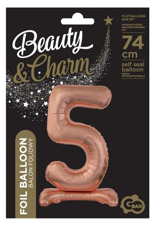 Rose Gold 5-ös szám fólia lufi talppal 74 cm