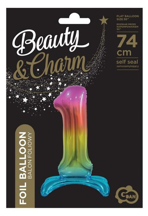 Színes Rainbow 1-es szám fólia lufi talppal 74 cm