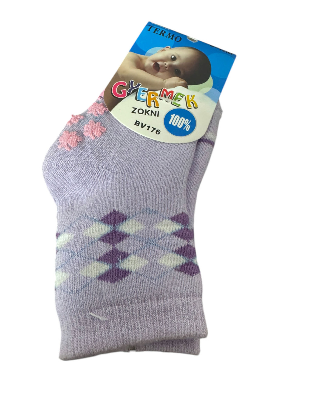 Vastag lányka csúszásgátlós zokni 0-12hó - lila