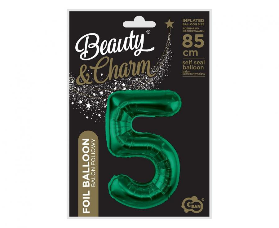 Zöld B&C Bottle Green 5-ös szám fólia lufi 85 cm
