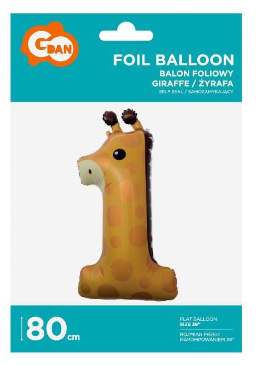 Zsiráf 1-es Giraffe szám fólia lufi 80 cm