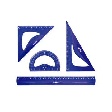Rugalmas és ellenálló alapanyagból készült, flexibilis vonalzókészlet. Speciális peremkialakításának köszönhetően a tinta nem dörzsölődik el használatkor. A készlet egy egyenes 30 cm-es vonalzót, egy 180º-os 10 cm-es szögmérőt, egy 90º/45º/45º-os háromszögvonalzót és egy 90º / 60º / 30º-os háromszögvonalzót tartalmaz.